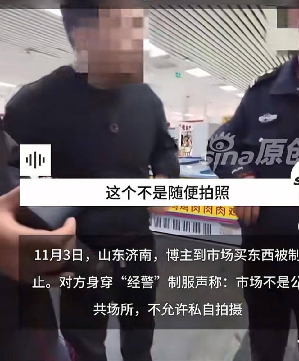 据视频显示,身着“经警”制服的男子制止博主拍摄时称,称市场不属于公共场所,不允许随意拍照,并称“公司规定(不允许拍照)”;博主则认为市场为公共场所,且拍摄的是自己购买的食材。双方发生分歧。